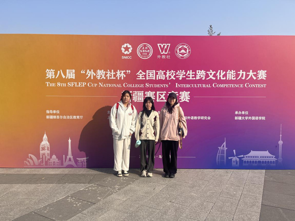 在2025年10月25日至26日举办的第八届“外教社杯”全国高校学生跨文化能力大赛(新疆赛区)中,我校代表队荣获“优秀奖。该赛事以“坚定文化自信,增进国际理解为主题,吸引了全疆19所高校的34支队伍参与。