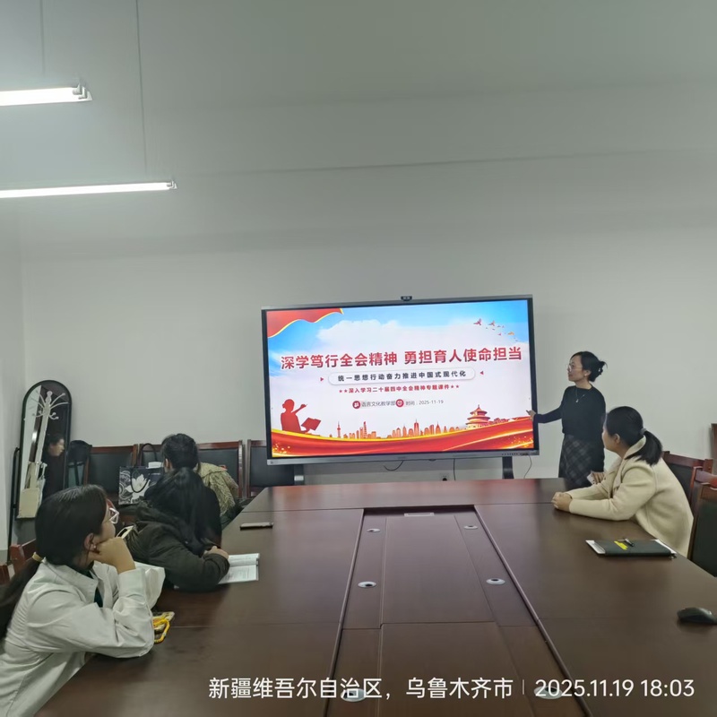 语言文化教学部教工党支部则以“深入学习二十届四中全会精神 勇担育人使命”为主题,支部书记赵星星同志带领党员教师重温全会公报核心要义,重点围绕“加快高水平科技自立自强”“培养时代新人”等部署,探讨语言文化教学中如何传承中华优秀传统文化、强化学生文化自信。党课中,党员教师结合教学实际分享交流,明确了要将全会精神融入课堂教学、科研创新和人才培养全过程,以语言为桥梁,践行“为党育人、为国育才”的初心使命。