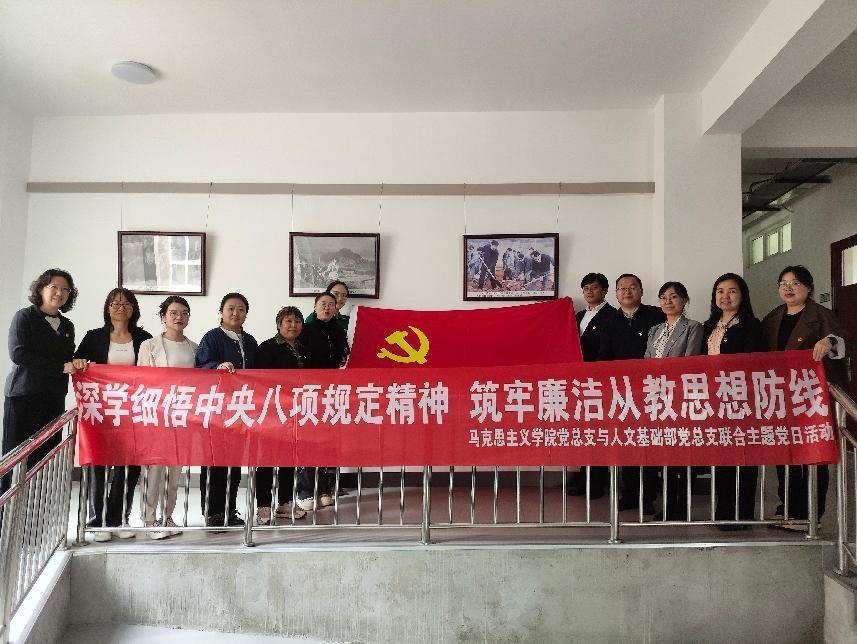 2025年4月30日下午,马克思主义学院党总支与人文基础部党总支于人文基础部联合举办“学悟中央八项规定精神筑牢廉洁从教思想防线”主题党日活动。活动由人文基础部党总支副书记、主任郭璟主持,两部门全体党员积极参与。