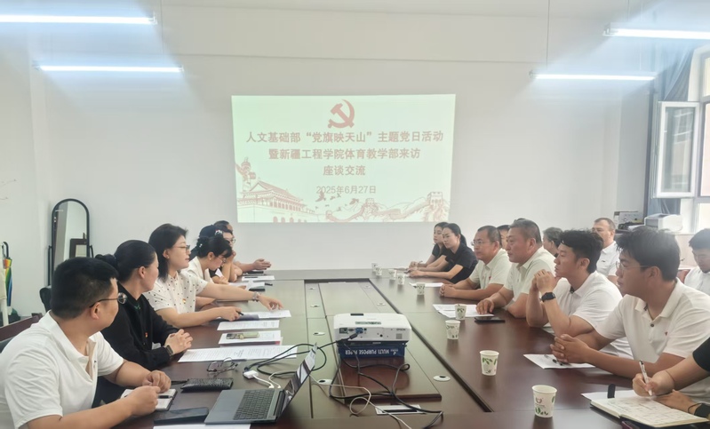 为庆祝中国共产党成立104周年,重温党史、歌颂党恩2025年6月27日上午,新疆艺术学院人文基础部党总支邀请新疆工程学院体育教部开展“党旗映天山”主题党日活动,双方在交流中深化党建与教学合作。