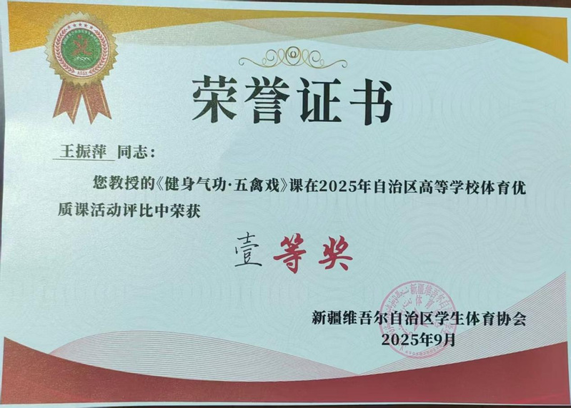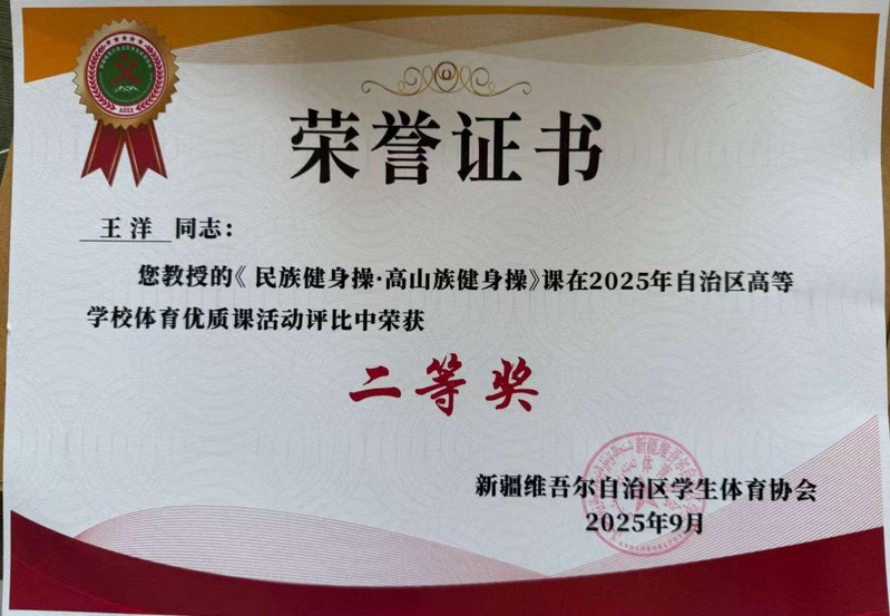 2025年10月18日,由自治区教育厅指导、新疆学生体育协会主办、新疆师范大学承办的2025年自治区普通高等学校体育优质课现场展示活动圆满落幕。新疆艺术学院选派两名教师参赛,凭借扎实的教学功底与特色课程设计脱颖而出,分获殊荣。